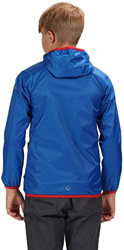 Regatta Lever II' Giacca Shell Leggera Impermeabile con Cappuccio, Jackets Waterproof Unisex Bambini, Oxford Blue/Pepper, 3-4
