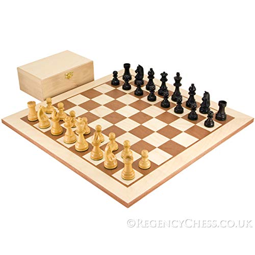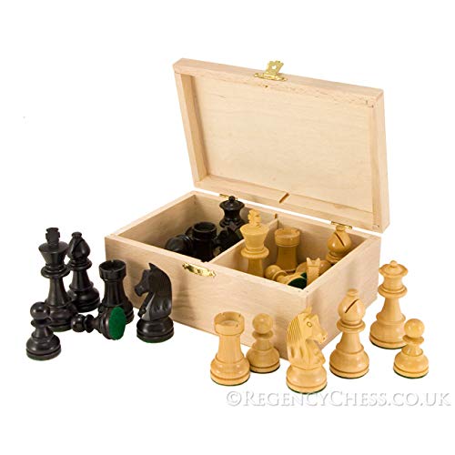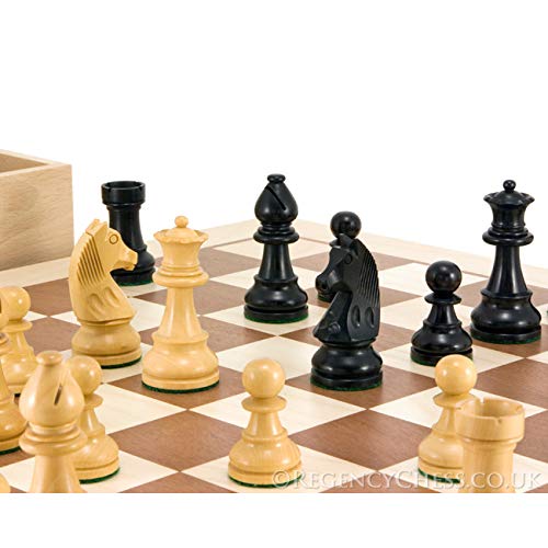 The Regency Chess Company 7.6cm Ebanizzato Giù Testa Scacchi Uomo con Astuccio e Scheda di Scacchi