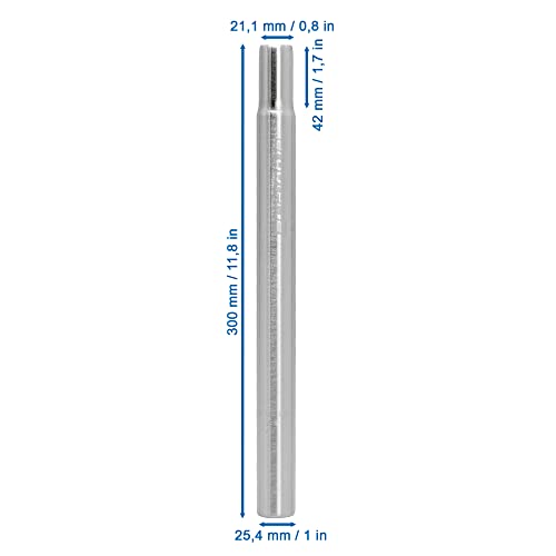 P4B | Reggisella Ø 25,4 mm - 300 mm Reggisella Lungo in Alluminio Argento - Non molleggiato | Livello di Sicurezza 2 | Fino a 100 kg di Peso del Ciclista