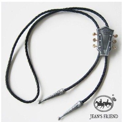 Bolo tie regimental ties cravatta di cuoio western chitarra antico argento