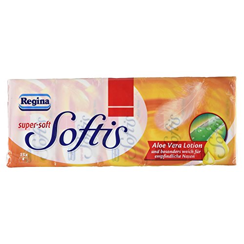 Regina Softis - Fazzoletti a 4 strati, aloe vera, 15 x 9 pezzi