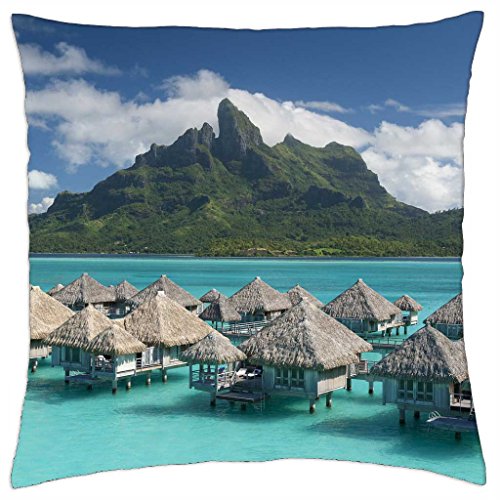 St Regis Resort Bora Bora Water Villas Bungalows over Blue Lagoon - Throw Pillow Cover Case (18