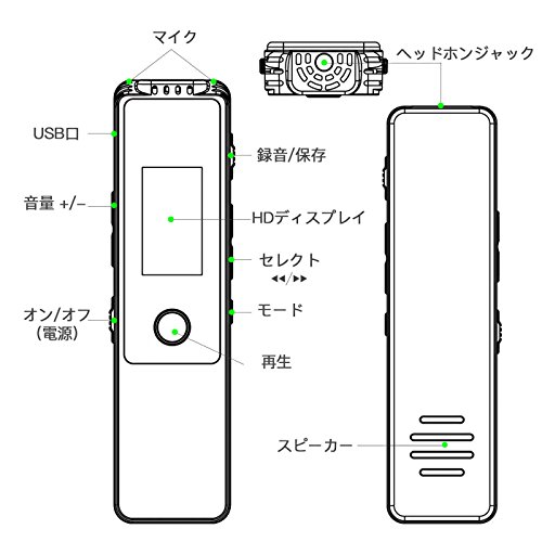 Multifunzionale: Dittafono digitale, MP3 player (MP3/WMA/WAV) e memoria USB integrata. Ulteriori funzioni: due microfoni sensibili alto con riduzione del rumore, Dinamico timera ufnahme, funzione attivazione vocale, A-B riproduzione ripetuta ecc. Il dispositivo è molto utile in diverse situazioni, come quotidiani, professionale, a scuola o in interviste.