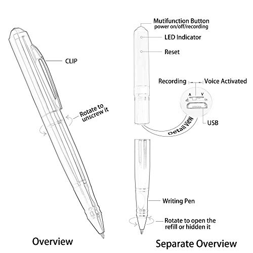 Registratore Vocale Digitale,8GB Registratore Vocale Attiva con Rumoreal Penna,Lunga Durata 15 Ore Registrazione per Conference,Lezioni,Interviste