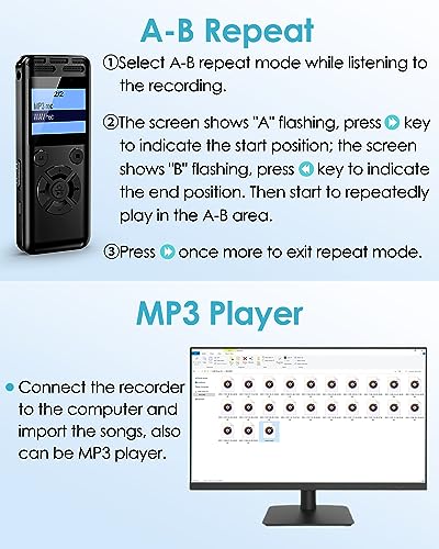 【Potente + Professionale: Password & Multifunzione】 Impostare una password di 4 cifre per proteggere i file personali e impedire ad altri di visualizzarli! Le funzioni aggiuntive includono: Riproduzione a velocità variabile, Registrazione programmata, Registrazione di sottosezioni, Ripetizione A-B, Riproduzione con altoparlante, Avanzamento veloce, Protezione batteria scarica, ecc. Ideale per riunion, interviste, lezioni, corsi... Fidatevi di me, soddisferà le vostre esigenze di registrazione