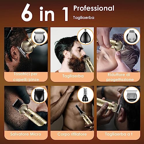 VGR Regolabarba uomo Rasoio Elettrico Barba Capelli Corpo, Kit Completo per la Cura della Barba, Trimmer T-Blade, 7 in 1