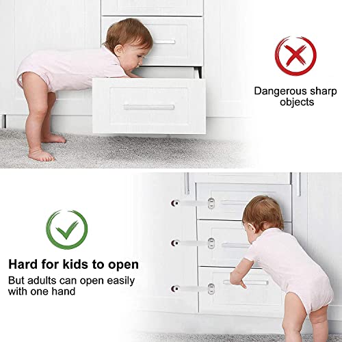 Regolabile Bambino Chiusure di Sicurezza - 6 Pezzi Blocca Cassetti Bambini Blocca Cassetti per Bambini con 3M Adesivo Utilizzato Per Frigoriferi, Cassetti, Ante Di Armadi Nessun Trapano Necessario