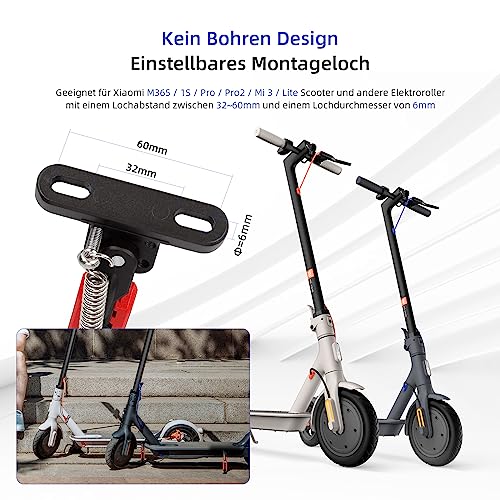 【FACILE DA INSTALLARE】 - Il pacchetto include: 1 * cavalletto, 3 * chiavi, 2 * viti. Il foro di montaggio è un foro ovale e la distanza di montaggio è relativamente grande. Hai solo bisogno di installare semplicemente due viti senza danneggiare lo scooter originale.