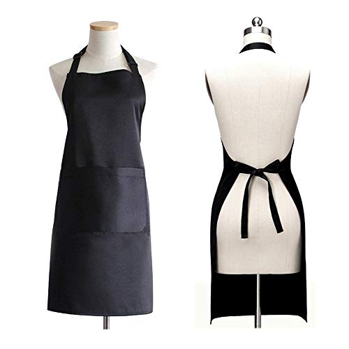 JZK 2 x Nero Regolabile Impermeabile Grembiule Cucina con Tasche Grandi Grembiule Cuoco per Uomo Donna per Cucinare Barbecue Pittura