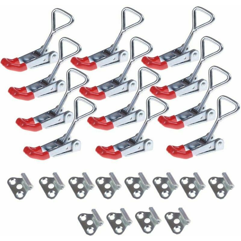 Dimensioni complessive del modello (circa) 10 x 2,7 x 2 cm Diametro foro fisso (ciascuno): 4 mm Facile da installare: i morsetti a levetta sono facili da installare, basta fissarli con viti n. 8. La distanza di installazione è regolabile. Anche se lo installi un po' lontano o vicino, puoi sempre regolare la vite e renderla stretta o allentata.,Altri usi: qualcuno dice che ha migliaia di usi. L'Hasp Latch può essere utilizzato per ante di armadi, scatole di immagazzinaggio, cassette degli attrezzi, valigie, coperchi per affumicatori, creazione di maschere, portautensili, portapezzi, collegamento di parti mobili, bloccaggio di due sezioni e altro ancora.