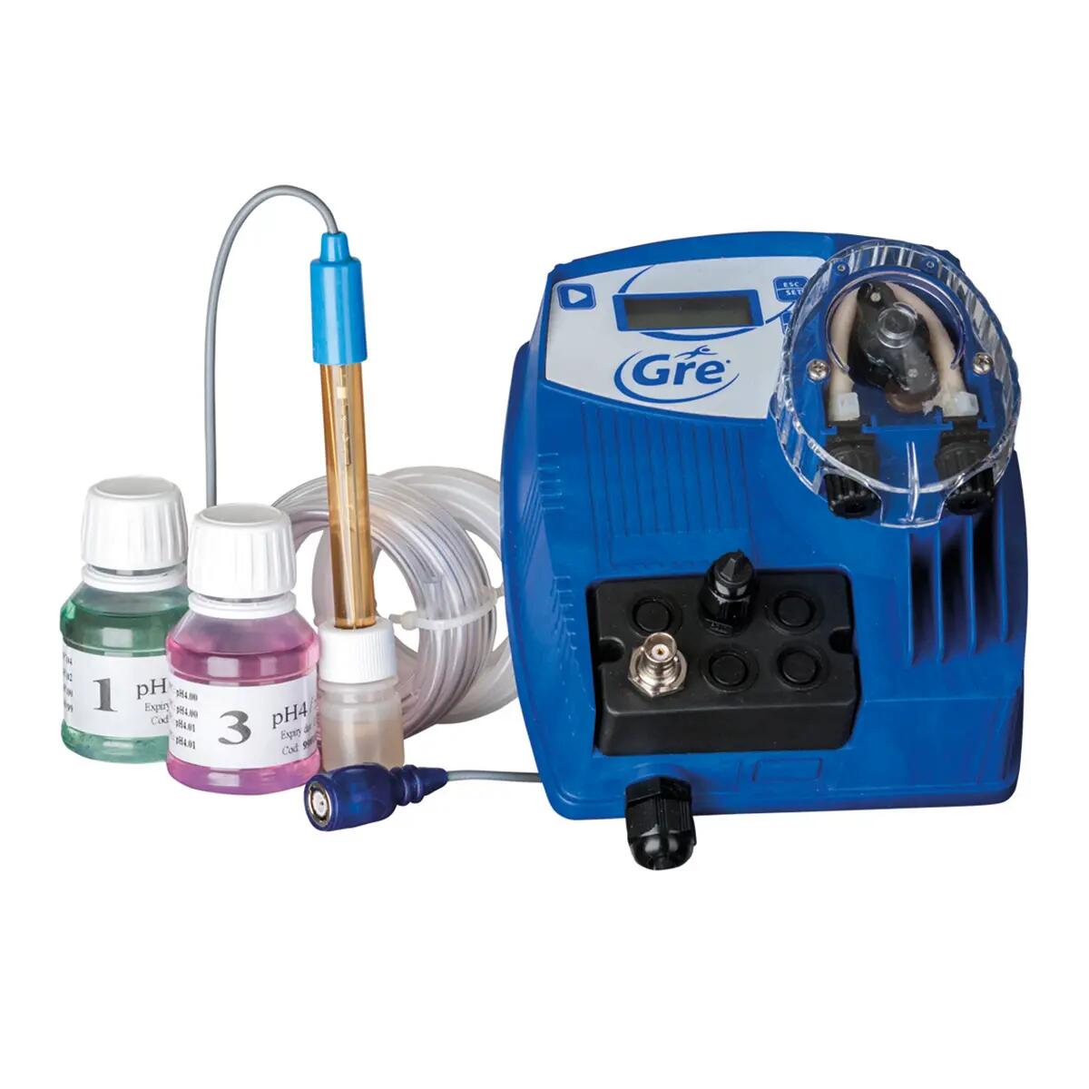 Controllore di pH con pompa peristaltica per piscine interrate. Il regolatore di pH con pompa peristaltica per piscine interrate automatizza la regolazione del pH, permettendo stabilizzare il pH in valori ideali per avere comfort e ottimizzare l'efficacia del trattamento di disinfezione.. Automatizza la regolazione del pH. Dosaggio di prodotti chimici nelle piscine, con una portata variabile di 4 l/h Consente di stabilizzare il pH su valori ideali per il comfort di chi utilizza la piscina Ottimizza l'efficacia del trattamento di disinfezione. Perfetto in combinazione con lo sterilizzatore a sale Il guscio in polipropilene conferisce robustezza e lunga durata