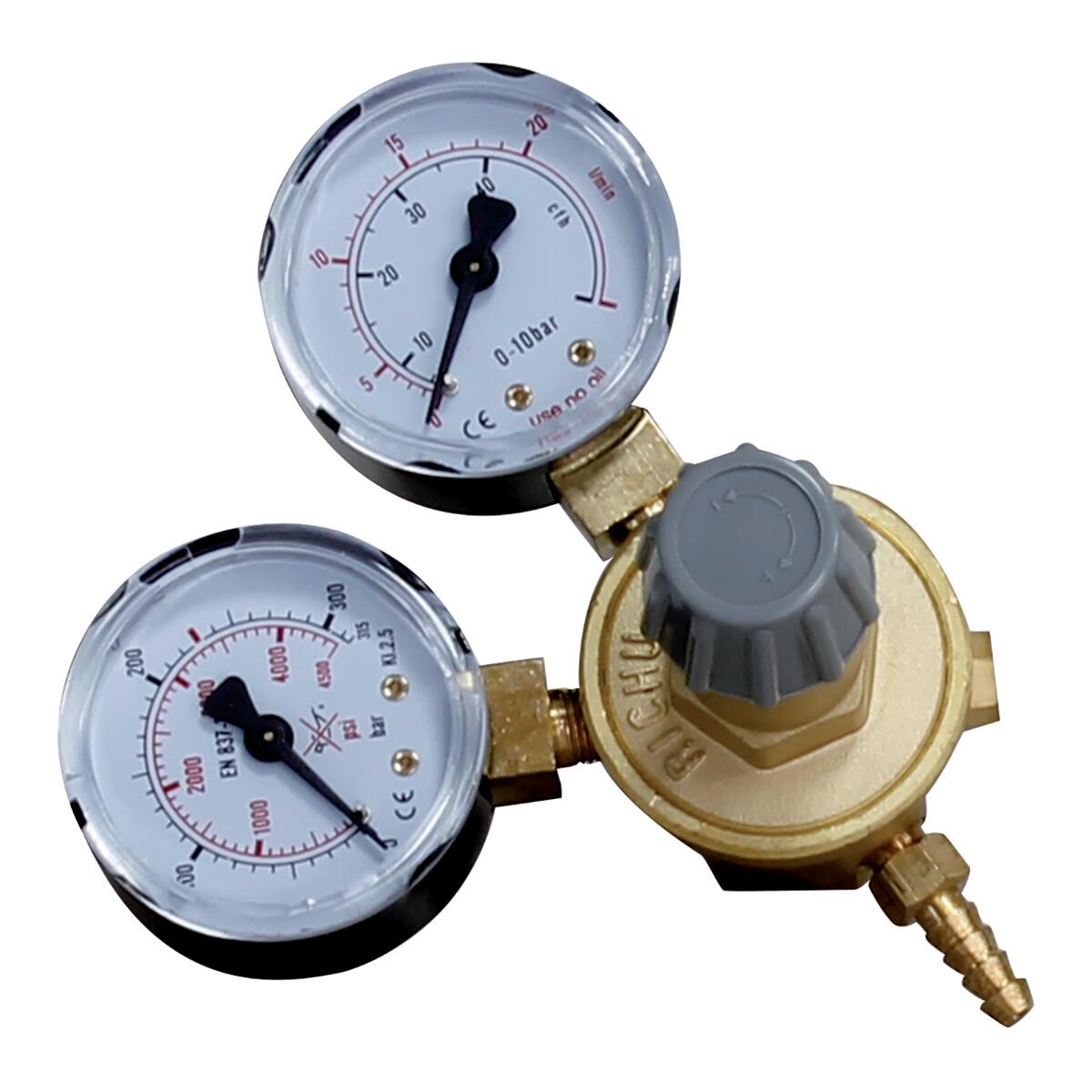 Riduttore con due manometri per bombole gas CO2/Argon