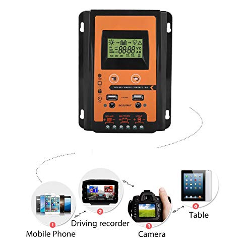 △[Sicuro e portatile] Il regolatore intelligente del pannello solare ha una protezione affidabile da sovratensione, protezione da cortocircuito, protezione da sovraccarico, protezione da sovraccarico, protezione da scarica eccessiva, buona dissipazione del calore e tutti i vari dati in tempo reale visualizzati su un display. Schermo LEDmostra che i pannelli solari e la batteria sono realmente collegati al controller, comodo da controllare.adatto per mppt solar charge