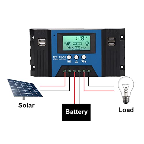 Regolatore di Carica del Pannello Solare, 5V 2.5A Advanced Charge Start 4 Porte USB Regolatore di Carica Solare Protezione Multipla per Diverse Batterie (100A)