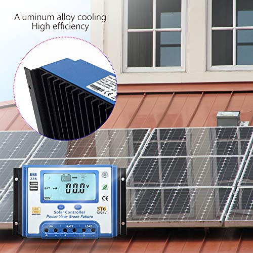 Ampio regolatore di carica solare 30 Amp, identificazione automatica 12V / 24V, doppia uscita USB