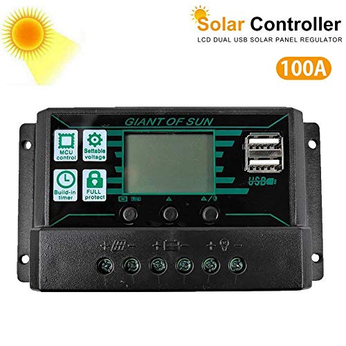 Regolatore di carica solare 2 in 1 MPPT / PWM con display LCD e doppia porta USB, protezione da sovracorrente, regolatore intelligente batteria pannello solare 100A