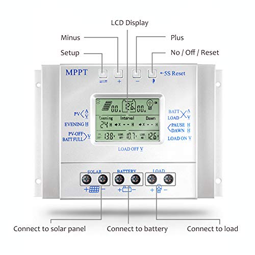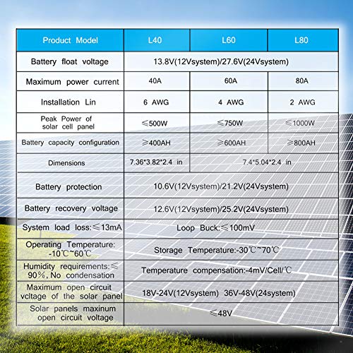 Regolatore di carica solare 80A per ingresso CC 12V / 24V, display LCD visibile semplice per la visualizzazione dei dati e il monitoraggio dello stato del sistema;