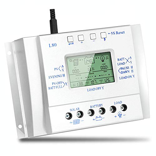 Regolatore di carica solare 80A, regolatore solare 12V 24V 80A per ingresso max 48V con controllo luce e timer Uscita USB 5V
