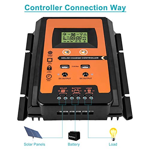 [Sicuro e comodo da usare]: il regolatore intelligente del pannello solare ha una protezione affidabile da sovratensione, protezione da corto circuito, protezione da sovraccarico, protezione da sovraccarico, protezione da sovraccarico;