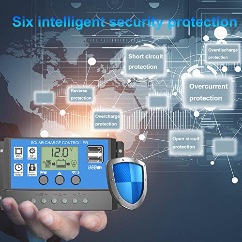 Display LCD: il regolatore di carica solare è dotato di un grande display LCD che può indicare chiaramente lo stato e i dati, può essere comodamente commutato tra modalità e configurazione dei parametri.