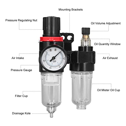 RIMUOVERE EFFICACEMENTE IMPURITÀ E DETRITI: il filtro regolatore può rimuovere efficacemente impurità e detriti nell'aria compressa, prolungando la durata e le prestazioni dell'utensile