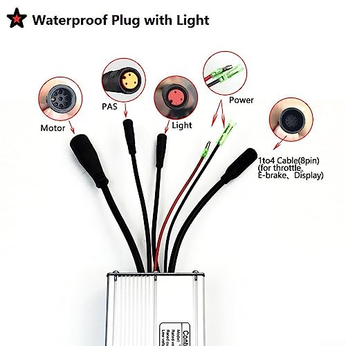 * Connettori: motore (spina impermeabile a 9 pin), alimentazione, PAS (spina impermeabile a 3 pin), cavo da 1 a 4 (8 pin per acceleratore, e-bike, display) 、 Cavo luminoso