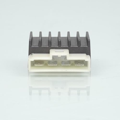Regolatore raddrizzatore di tensione 12 V nuovo di marca One Italia, dotato di un connettore a quattro terminali maschi piatti. Dimensioni totali: larghezza 43 mm. Lunghezza 57 mm. Spessore 20 mm. Diametro del foro di fissaggio 6 mm. Venduto all'unità. Consegnato come da foto.