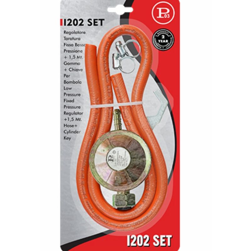 CONFEZIONE1 REGOLATORE TARATURA FISSA PER STUFE A GAS INFRAROSSI E CATALITICHE CON BOMBOLA2 FASCETTE1,5m TUBO GOMMA GAS GPL