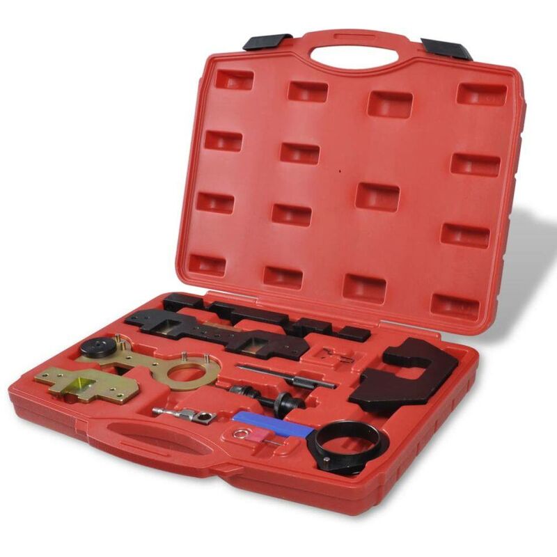 Descrizione: Si tratta di un kit completo per il bloccaggio dell'albero a camme durante il controllo o la regolazione, la sostituzione dell'albero a camme di aspirazione o catena di distribuzione su BWM M40/42/43/44/50/52/54/56. Tutti gli attrezzi sono di alta qualità, e sono progettati per l'uso prolungato in officina. Il kit è classificato di grado industriale. Gli attrezzi sono ben conservati in una custodia robusta per anni di utilizzo. Specificazioni: Include gli attrezzi necessari per: Installazione e rimozione dell'albero a camme Sostituzione della catena di distribuzione sui motori M40 Controllo e regolazione dell'albero a camme 11 pz: Attrezzo per bloccaggio albero a camme da usare come OEM 112300 Serratura a camma da usare come OEM 113190 Serratura a camma da usare come OEM 113240 Strumento di tensionamento per la catena di distribuzione da usare come OEM 114220 Kettenraddreher da usare come OEM 115490 Raccordo ad aria compressa da usare come OEM 113450 Tendicatena