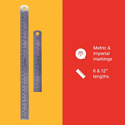 Il set include regole in acciaio da 6 "(150 mm) e 12" (300 mm)