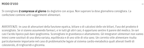 Modalità d'uso: 2 compresse al giorno, da deglutire con un bicchiere d'acqua.