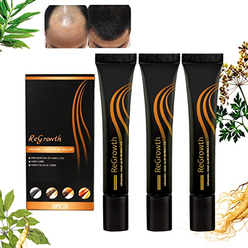 Regrowth Organic Hair Serum Roller Set 3 Pezzi Biotin Hair Growth Serum con Anti Hair Loss Siero, Hair Care Anti Stripping Liquid per uomini e donne di tutti i tipi di capelli