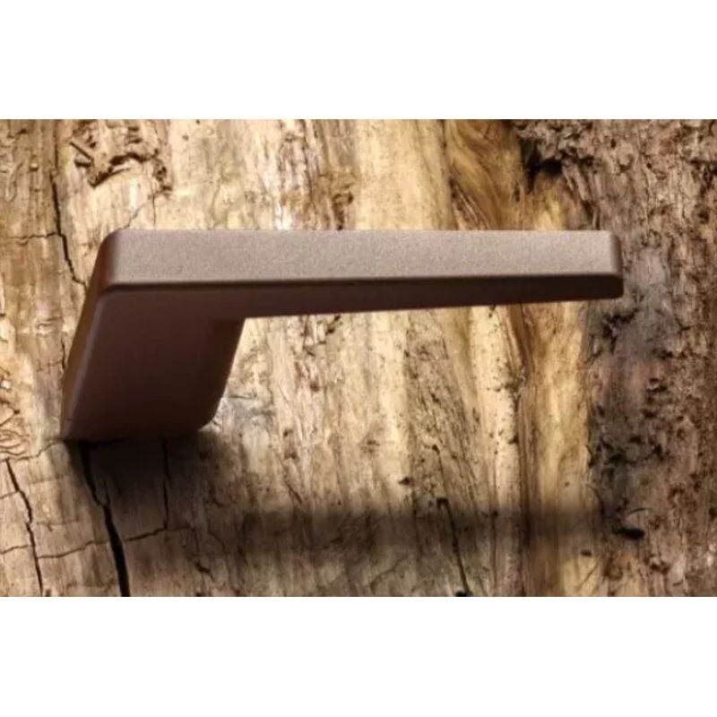 Maniglia REGUITTI serie OBLIQ art.700 per porta interna in alluminio senza bocchette (da abbinare a parte, foro patent o yale) con molla in finitura tipo ruggine korten timeless rust. La rosetta integrata alla maniglia armonizza l'impugnatura con lo stile di qualsiasi porta. l'installazione non richiede nessuna foratura speciale, ma solo l'utilizzo delle 3 viti standard. Il grano con frenafiletto garantisce un fissaggio della maniglia ancora piu' sicuro. La molla di ritorno e' integrata nella rosetta sotto impugnatura.
