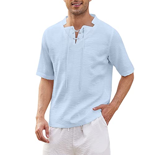 Regular Fit Polo Estate Sport Golf Polo Uomo Primavera ed Estate Solid Top Shirt Casual Cotone Lino Collo Alto Top Plus Size Vacanze Manica Corta Rosa Camicia Uomo, Blu, XL