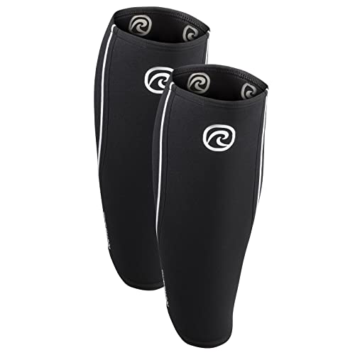Rehband Bendaggio per polpaccio in neoprene, bendaggio compressivo per polpaccio e stinco, parastinchi per stacchi da terra, CrossFit, Colore:Nero - 1 Paio, Misura:XS
