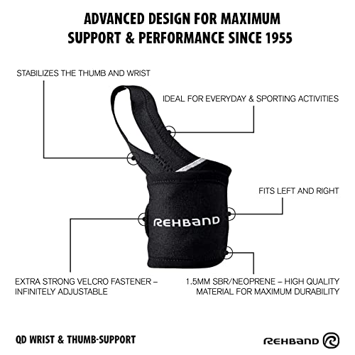 Rehband Fascia per polso inclusione del pollice per la stabilizzazione nello sport e nel lavoro, Colore:Nero, Misura:Taglia unica