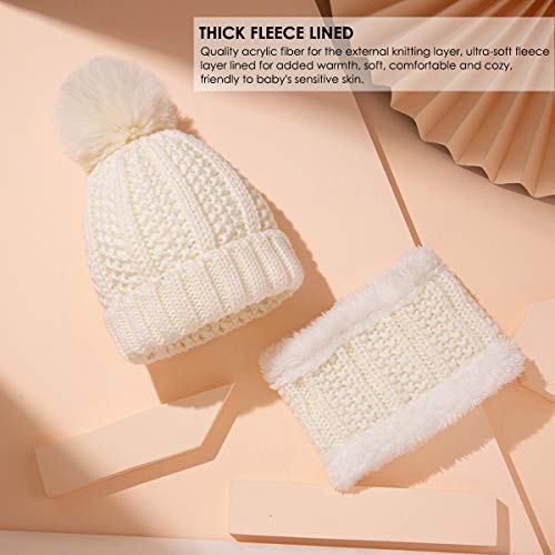 Rehomy - Set di 2 cappelli e sciarpe per bambini, set di 2 sciarpe, in caldo pile foderato in maglia, per bambini da 0 a 3 anni