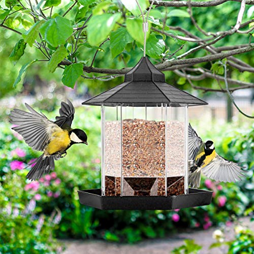 Rehomy Mangiatoia per uccelli selvatici, gazebo esagonale in plastica da appendere mangiatoia per uccelli con tetto per esterni, patio, giardino, cortile, decorazione 19 x 19 x 20 cm