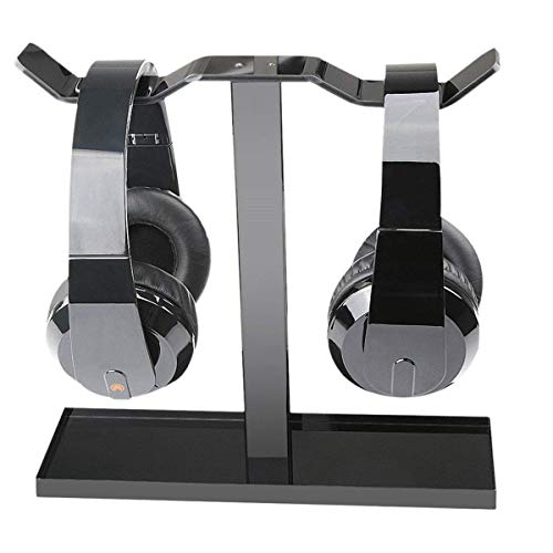 Rehomy Supporto per cuffie universale per cuffie da gioco in acrilico doppio supporto per auricolari da scrivania con supporto per display con custodia inferiore