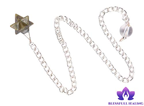 Reiki Healing Energy Spirituale Gemstone Labradorite Star Spinning Merkaba Dowsing Pendulum con catena lunga -Blessfull Healing