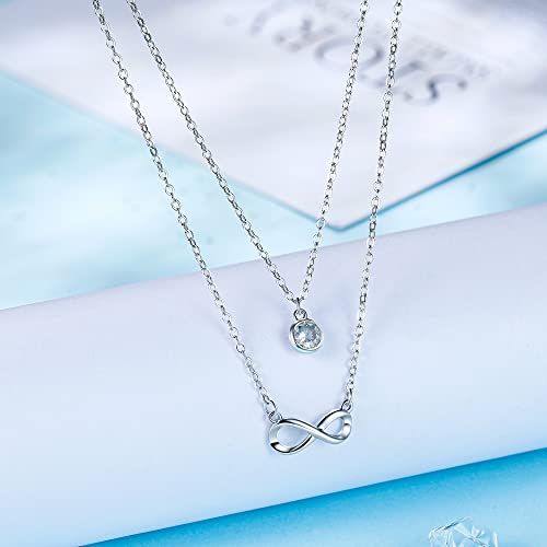 REIOT Collana Infinito Donna, Catena a Doppio Strato in Argento Sterling 925 con Zirconi Cubici 3A, Regalo di Compleanno per la Festa della Mamma, 43 + 5 cm
