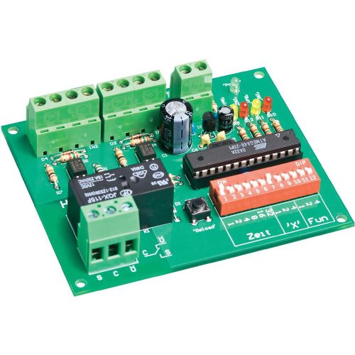 Il circuito realizza 8 diverse funzioni: inserimento ritardato con reset · Spegnimento ritardato con reset · Accensione/spegnimento ritardato con reset · Monoflop con reset · Monoflop con Restart e reset · Interruttore On/Off · Tasto di accensione/spegnimento · Interruttore lampeggiamento (Toggle)