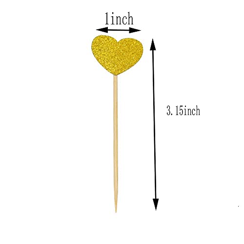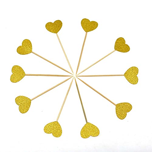 RELAND SUN 10 decorazioni per cupcake a forma di cuore, per feste di compleanno e matrimoni (oro)