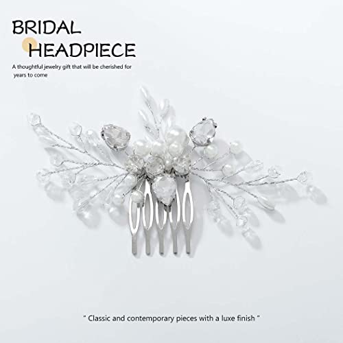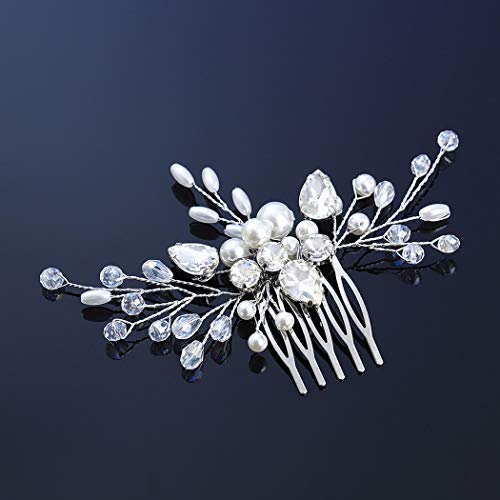Relandy Pettine per capelli da sposa in argento con perle e cristalli per capelli per damigella d'onore e sposa