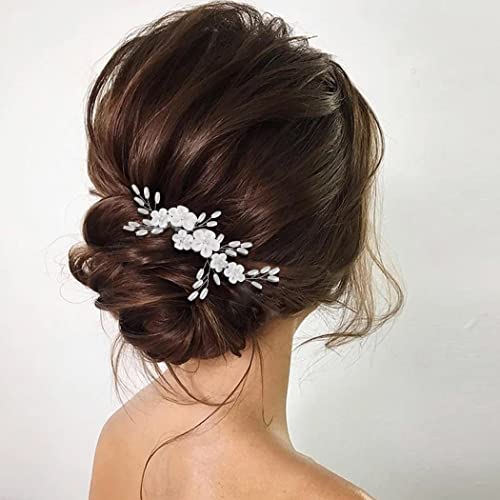 Relandy Pettine per capelli da sposa per sposa con fiore e perle d'argento accessori da sposa per le donne