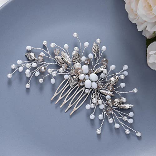 Relandy - Pettine per capelli da sposa con perle argentate, accessorio per capelli da sposa per donne e ragazze