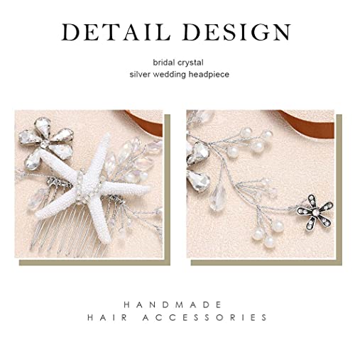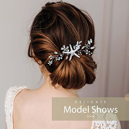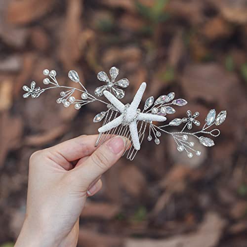 Relandy Pettine per capelli da sposa, stella marina, in argento, con perle floreali, accessori per capelli da sposa, per sposa e damigelle d'onore