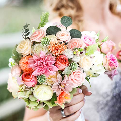 RelatoHolife Fiori Finti per Decorazioni Rose Fiori Artificiali da Esterno Rosa Combinati Per Diy Bouquet Da Sposa Centrotavola Arco Arrangiamenti Decorazioni(Rosa)