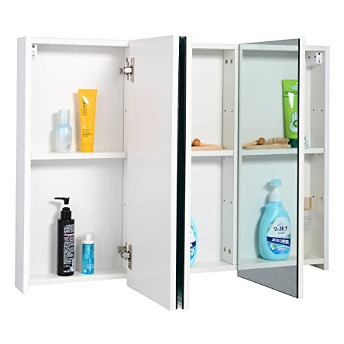 ★Ampio spazio di archiviazione★ La nostra specchiera è progettata con 3 ante e 3 ripiani, quindi offre un spazio sufficiente per conservare gli oggetti da bagno tra cui dentifricio, spazzolino da denti e carta igienica.