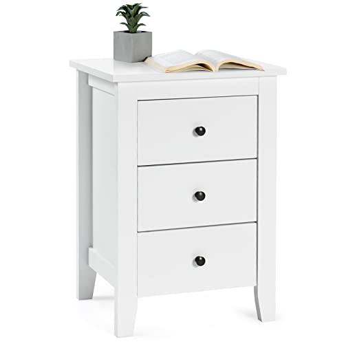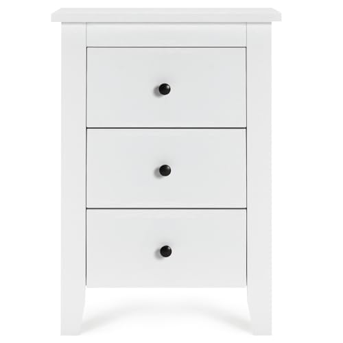 RELAX4LIFE Comodino Camera da Letto, Comodino Piccolo con 3 Cassetti, Cassettiera in Legno, Mobiletto per Soggiorno/Ufficio (46 x 37 x 65 cm, Bianco, 1)